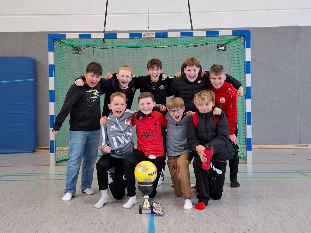 Auch in diesem Jahr traten wieder sechs Mannschaften der Jahrgangsstufen 5 und 6 gegeneinander an, um den Schulmeistertitel untereinander auszuspielen. Dabei konnte sich, vor vielen Zuschauern und einer tollen Atmosphäre in unserer Sporthalle, die 6b mit 5 Siegen und insgesamt 20 Toren klar durchsetzen und sich den Titel holen. Den zweiten Platz erreichte mit vier Siegen und 10 Toren die 5b, die sich im direkten Vergleich der 6b knapp mit 0:1 geschlagen geben musste.
