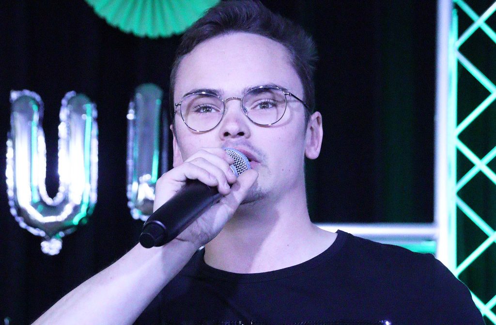 Der ehemalige Schüler Marvin Schädle singt „Halleluja“ von Leonard Cohen.